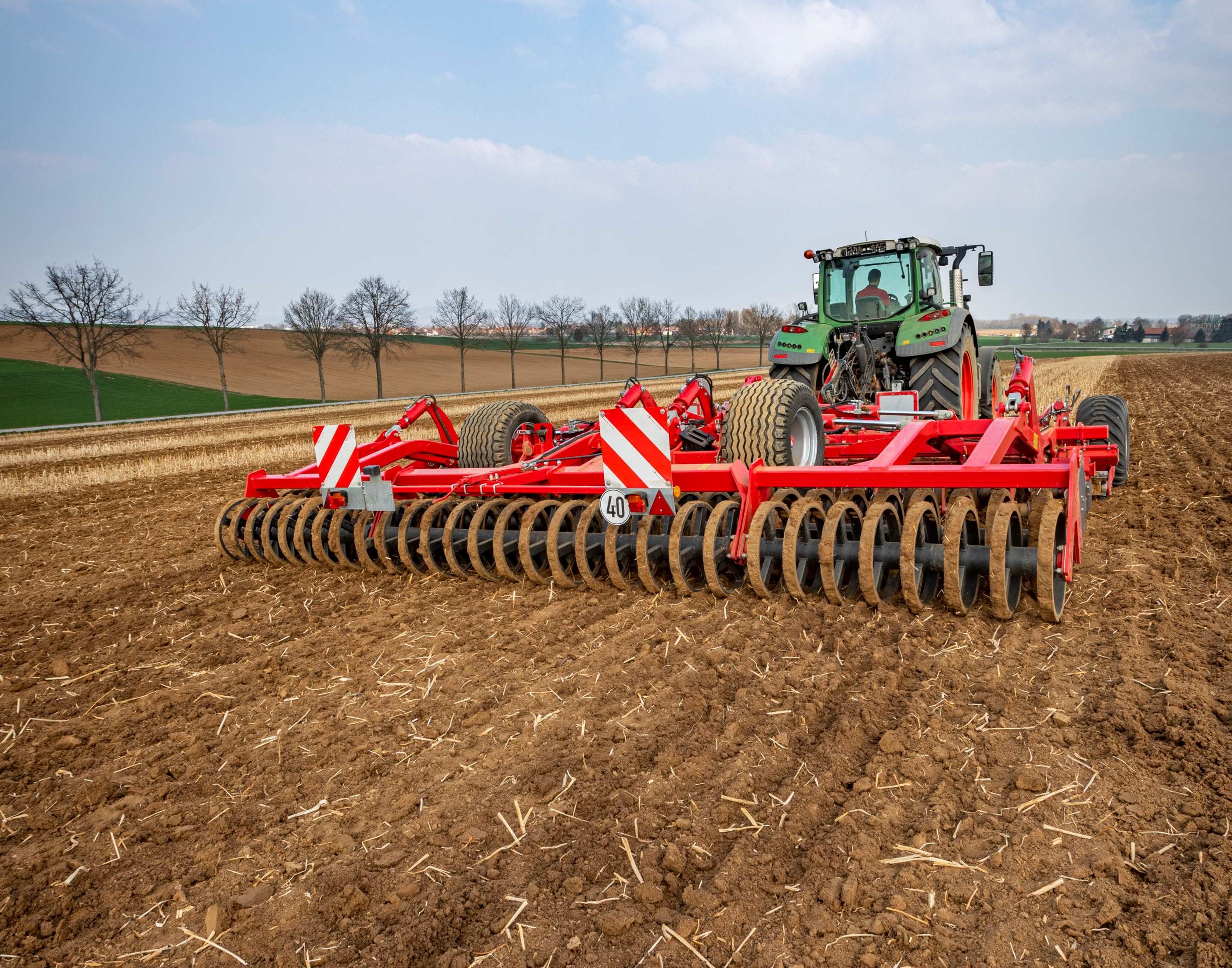 Die Joker RT ist optimal geeignet für die falche Stoppelbearbeitung zur Keimstimulation des Ausfallgetreides, Unterbrechung der Kapillarität, Einmischung von Ernterückständen und zur flachen Saatbettbereitung. Sie produziert einen hohen Feinerdeanteil im Keimhorizont und ist auch gegenüber hohen Mengen von Stroh, organischen Düngemitteln oder Zwischenfrüchten störunanfällig. Die Scheibenegge ist gezogen un dim Dreipunktanbau erhältlich in den Arbeitsbreiten von 3 bis 12 m. Für hohen Durchgang sind die Scheiben paarweise aufgehängt. Die gezackten Hohlscheiben sowie das Eigengewicht der Maschine gewährleisten auch bei trockenen Bedingungen einen sicheren Einzug der Maschine. Je nach Anforderungen kann die Joker RT mit einigen Zusatzausstattungen gewählt werden, hierzu zählen CrossBar, MiniDrill und Messerwalze. Um ein Aufschaukeln der Maschine im Feldeinsatz zu verhindern, verfügen die Joker RT Modelle über ein gedämpftes Fahrwerk.