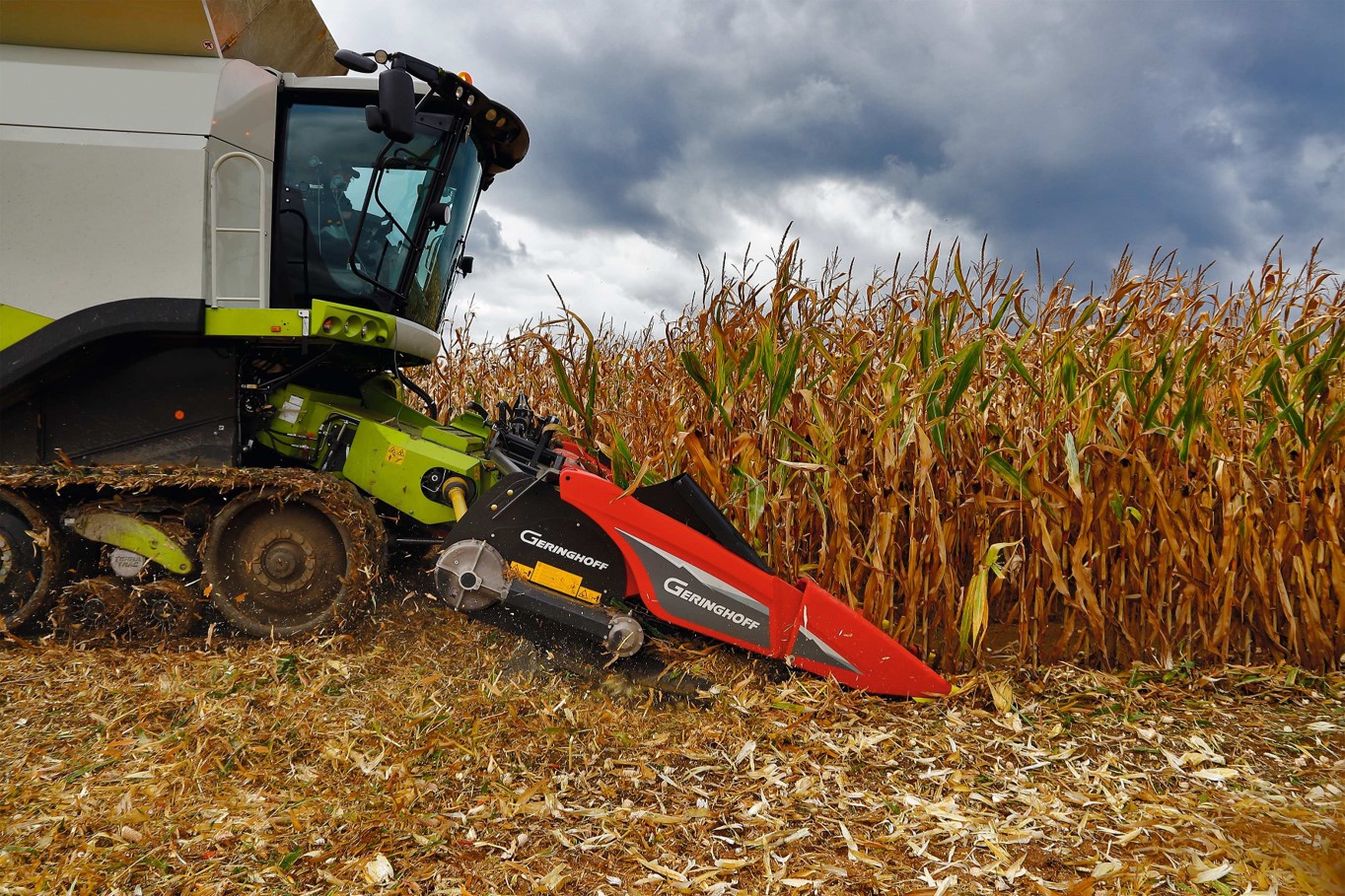 Der Geringhoff Horizon Star* III ist der weltweit erste Maispflücker, welcher während der Ernte die Maisstoppel zerkleinert. Dadurch wird die aktive Stoppelbearbeitung in den Ernteprozess von Körnermais integriert. Dieses System leistet einen wesentlichen Beitrag zur umweltverträglichen und erfolgreichen Bekämpfung des Maiszünslers und zur Verbesserung der Feldhygiene. Mit dem innovativen dreiwalzen Pflücksystem wird die Restpflanze optimal geschnitten und zerkleinert, dass zusätzlich montierte Hybridmesser mit seiner scharfen Schneide und abgewinkeltem Schlegel zerfasert und zerstört die Maisstoppel zuverlässig. Durch das Integrieren der Stoppelzerkleinerung in den Ernteprozess wird das Risiko von überfahrenen Maisstoppeln nahezu vollkommen beseitigt. Dadurch steigt der Bekämpfungserfolg, im Vergleich zu herkömmlichen Methoden, um ein Vielfaches an. Ebenso kann ein vollständiger Arbeitsgang eingespart werden, was zusätzliche monetäre und arbeitstechnische Einsparungen mit sich bringt.